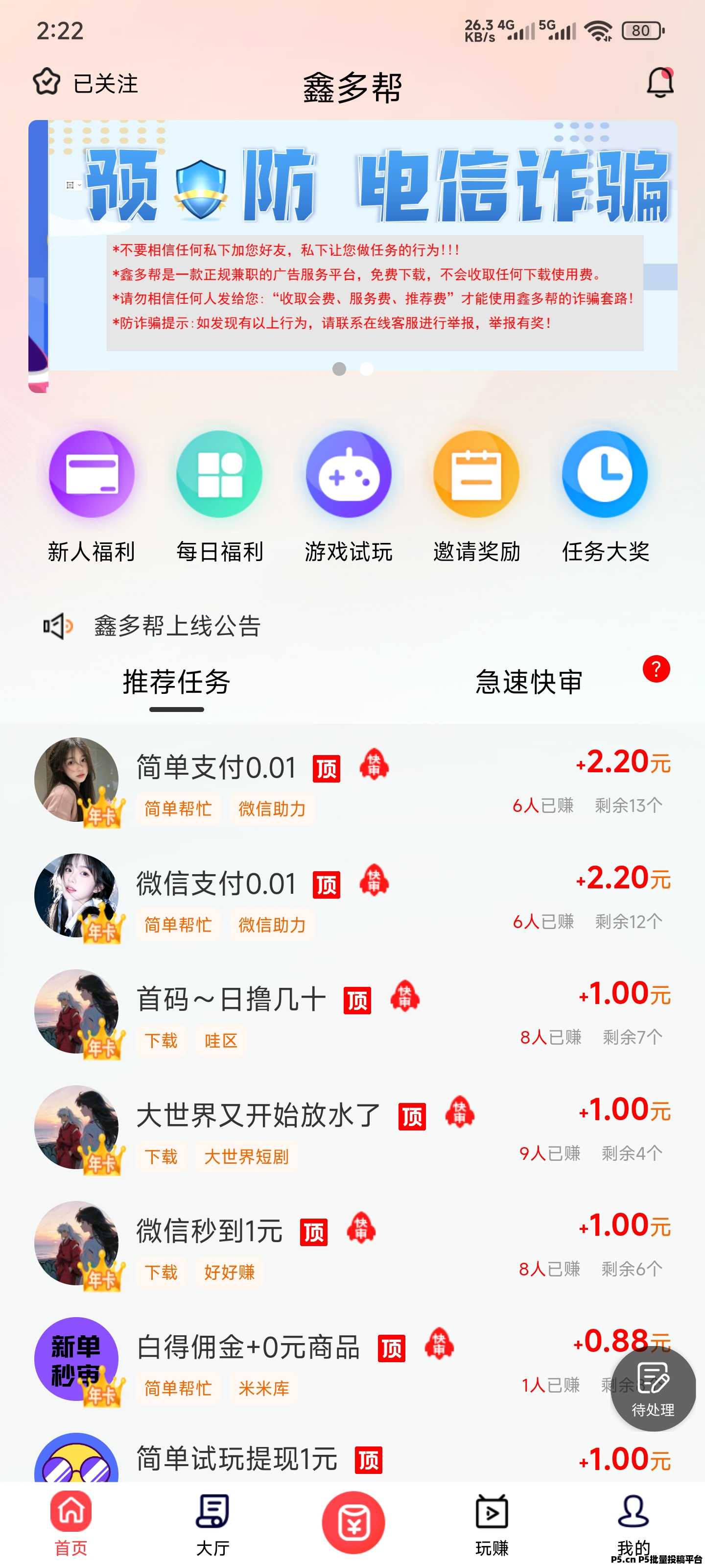 2、平均每个任务几分钟即可完成,赚取的奖励满1元即可提现秒到账。
