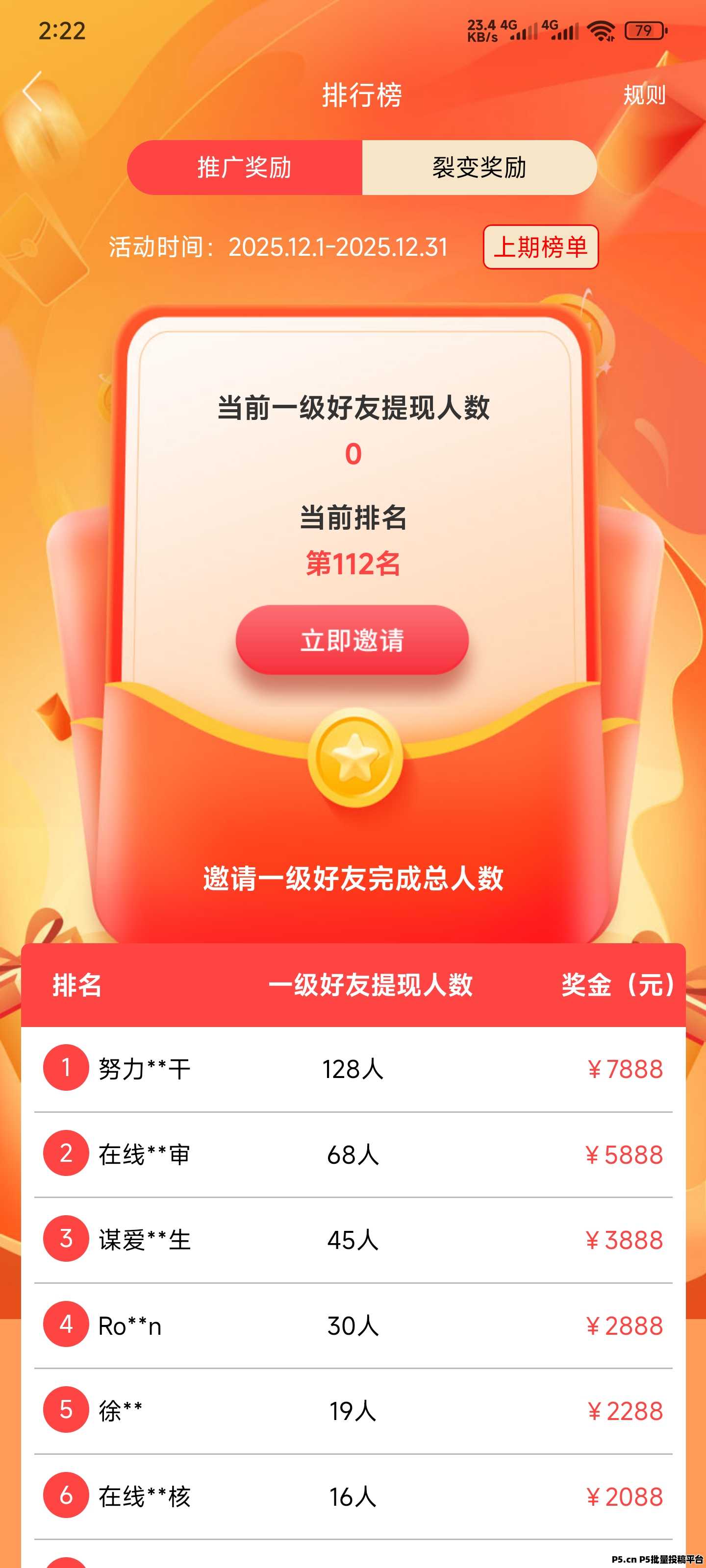 3、推广和做悬赏任务也有排行榜奖励。