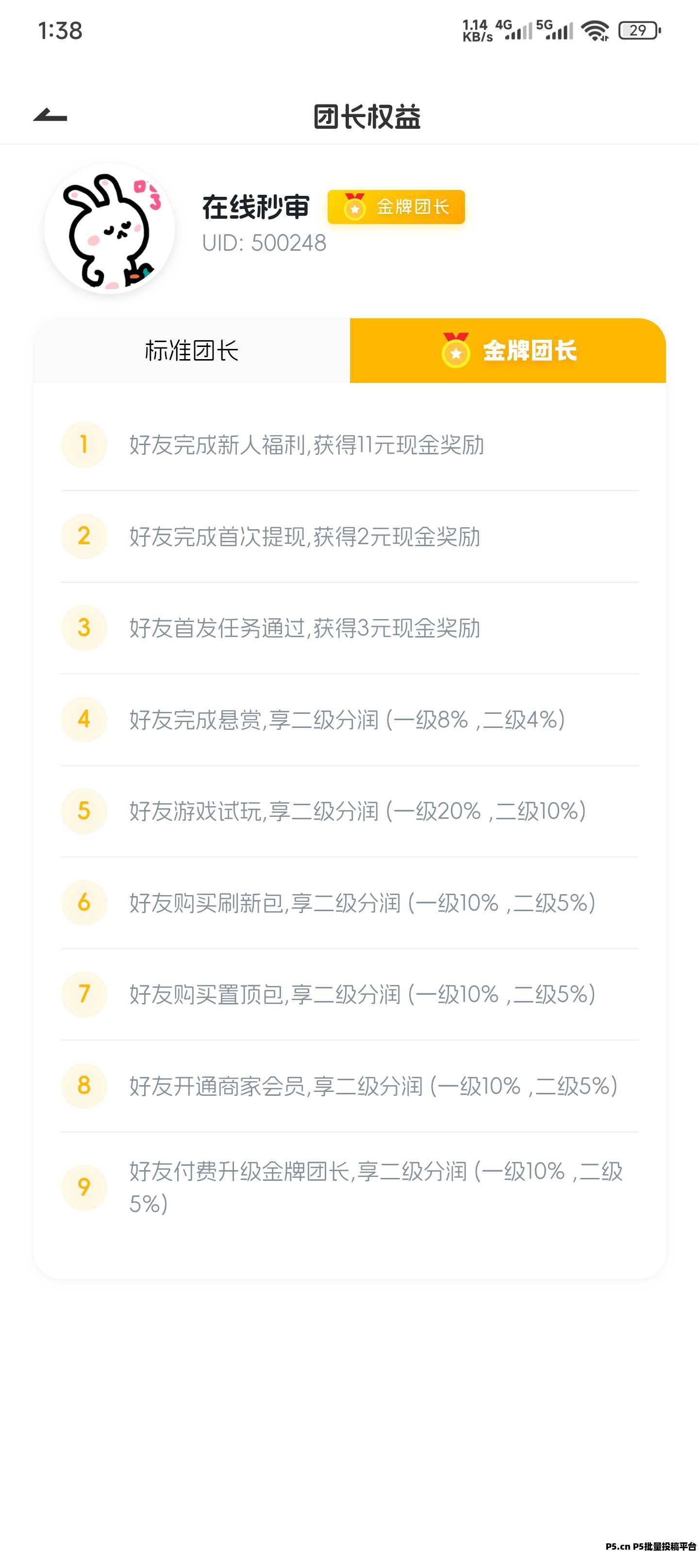 b.好友消费(开通会员/购买置顶/购买刷新):你可获得一级好友10%、二级好友5%的提成。